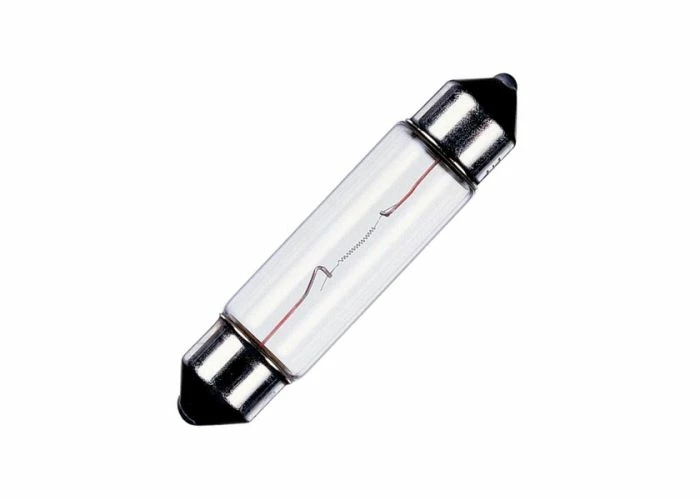 This style of small incandescent bulb is sometimes called a “festoon” lamp. They are distinguished by having a tubular bulb and a conical base on each end.