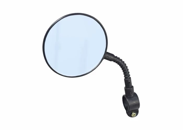 The clamp-on holder will quickly fit just about anything that uses a bar or tiller in the standard 7/8″ diameter. You can flex the little black plastic gooseneck rod from about 45 to almost 90 degrees, putting the 3-3/8″ (85 mm) mirror in the position you want. There is even a little red reflector on the dark side for added visibility. Although it is an economical alternative to much higher priced mirrors, it will do the job it was designed to do, and it will do it well.